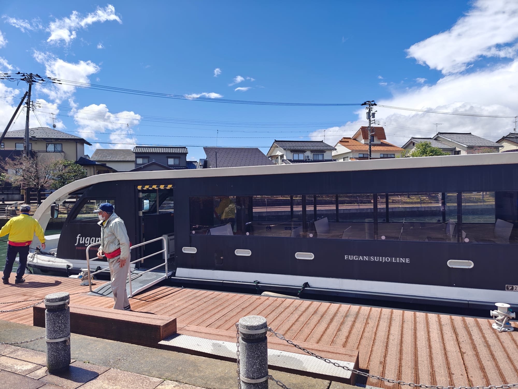 In the morning went for Matsukawa river Cherry Blossoms boat ride. It was situated in downtown Toyama actually which meant parking was harder to find and all chargeable. Parked at some city hall building. The whole parking situation was stressful because it caused us to be late and miss the boat ride so we had to catch the next boat. And later on when we got back to the carpark it was also stressful because I couldn't find the payment machine and had to carry H around in the basement looking for it and then she suddenly wanted to pee again even though she went recently. Finally went to first floor information counter and after some miscommunication was told to pay at entrance and fortunately we had enough change cos they can't even take 5000 yen.