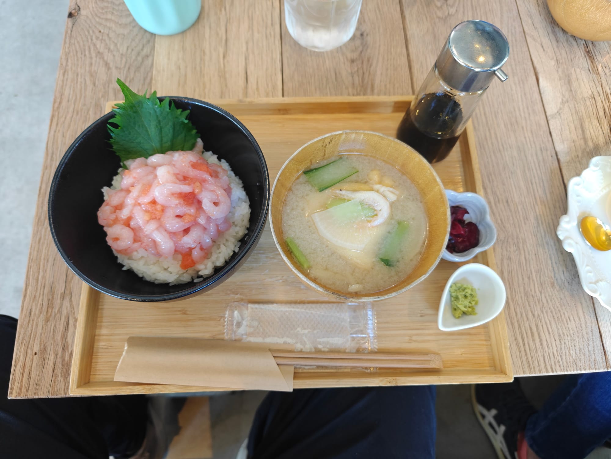Went for Kansui Park Canal Cruise. It was raining at the beginning, windy and wet day. Then the weather cleared up and we could see sakura on both sides of the river. Both sides of the river were basically industrialized factories and the like. The main attraction was this "Nakajima Lock", which bridges two different parts of the river that have different water levels. Weather became very nice and sunny until after lunch. Lunch was at this Western-ish place but I had the botan ebi don (raw prawns), M had a beef don.